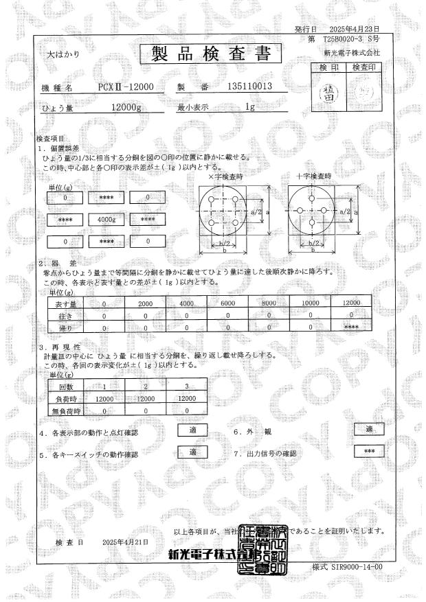 2025 年 6 月 12 日公開 2025年校正証書更新しました 個数計量器の校正が終了いたしました。 2025校正証明書を掲載いたしております。 PCX12000 PCX12000 PCX12000 PCX12000 PCXⅡ-12000 PCXⅡ-12000 PCXⅡ-12000 PCXⅡ-12000 サブタイトルサブタイトルサブタイトル テキストテキストテキストテキストテキストテキストテキストテキストテキストテキストテキストテキストテキストテキストテキストテキストテキスト